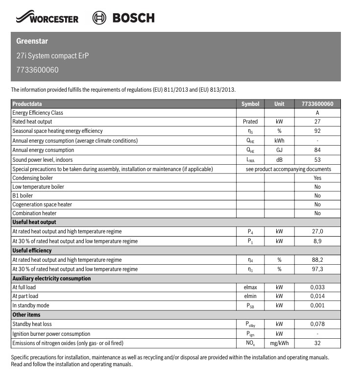 Worcester Bosch Greenstar 27i Compact Natural Gas System Boiler (27kW)